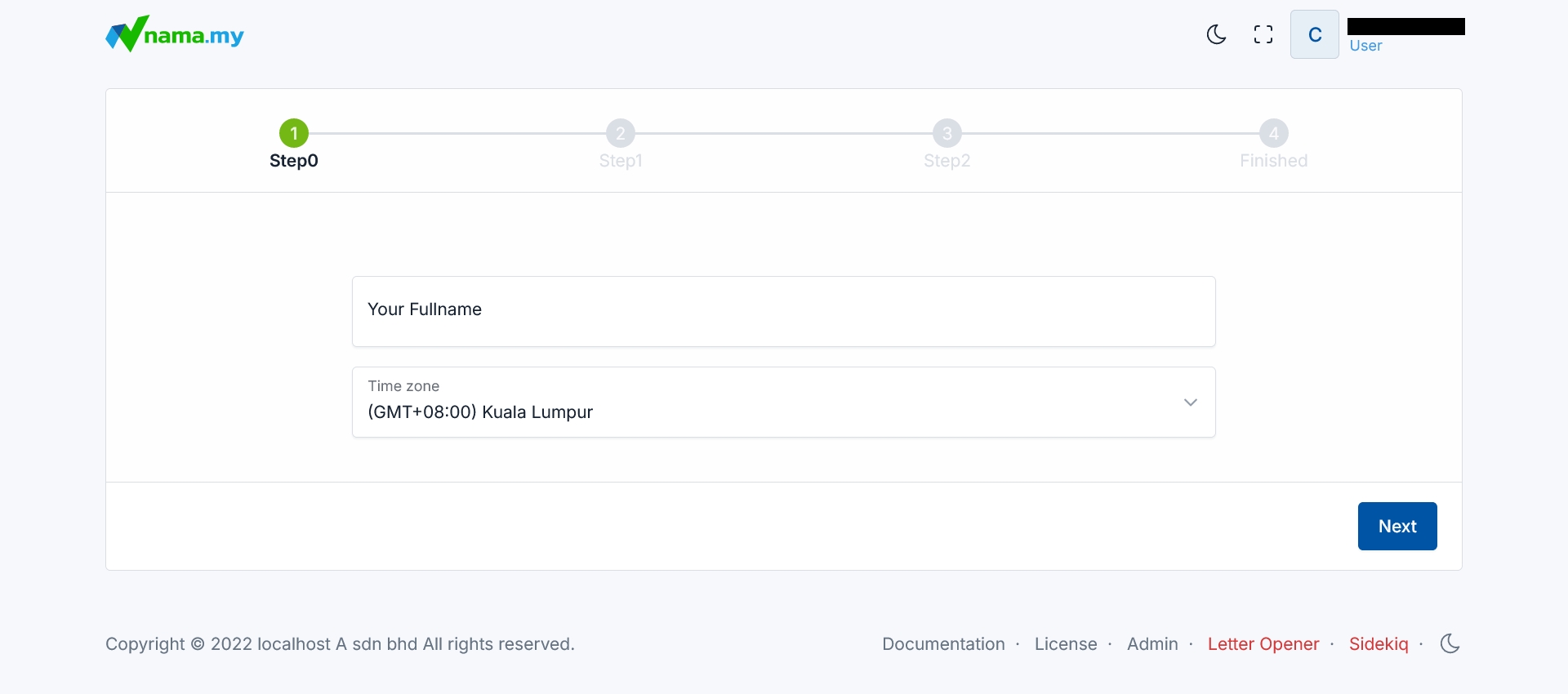 After account registration, it will bring you to the user onboarding. The user onboarding has 4 steps: