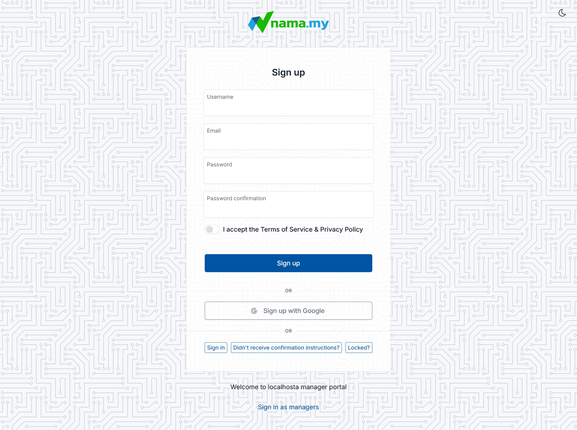 Email: Enter your email address. The email address must be one you haven't used for user account registration in nama.my.
